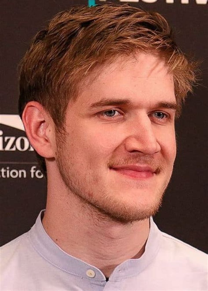 - He sports a brushed-up hairstyle.